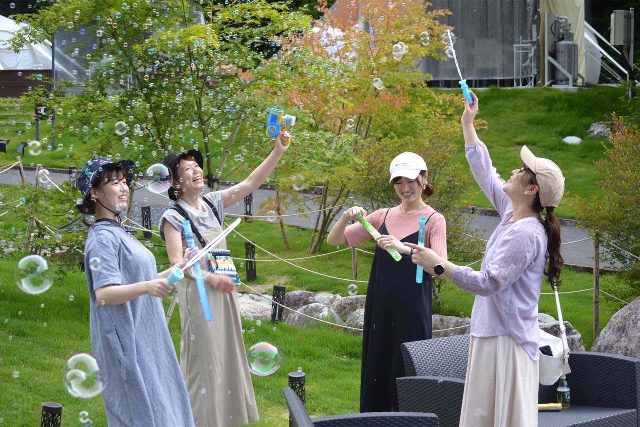 您可以與愛犬一起享受露營。客房內也準備了愛犬專用的備品,讓您的愛犬自由自在地玩耍,一起享受大自然的Glamping體驗。